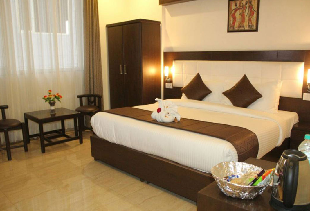 The rooms are compact and comfortable with seating arrangement for each guest. Specifically designed to comfortably accommodate three bed room. The rooms are designed to respond to your basic sleep requirements. Are very stylish & felted with healthy & clean Executive Rooms on a three bed room. Its contemporary styling shows a spirit of true indian spirit along with a western styling. Our Executive Rooms offer our guests all the comfort and modern design of a 3 star hotel, with a little extra touch of high standards: The rooms offer luminous floor to ceiling windows with warm lighting, rich plush textures and peaceful ambiance ensure an optimum comfort to every guest. With a three bed makes it impeccable. Rooms include elegant contemporary furnishings, luxury bedding, 24-hour room service, attentive concierge service, in-room safe, satellite TV and internet access. In addition, there is an individually-controlled air conditioning, coffee and tea facilities and a mini-bar with study table and chairs. Each bathroom also includes luxurious toiletries.